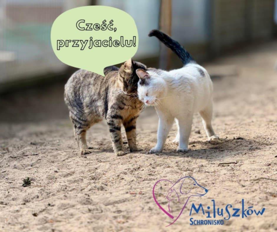Delikatne uderzenia głową w pyszczek, szyję lub bok innego kota – gest przyjaźni i serdeczności.