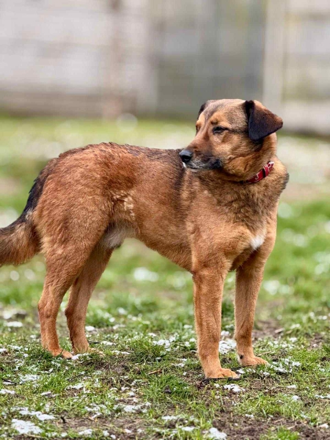 Rudy to wycofany, lecz zainteresowany swoim opiekunem pies. Wymaga ogromu cierpliwości, najlepiej odnalazłby się w domu z ogrodem jak i innymi psami. |
